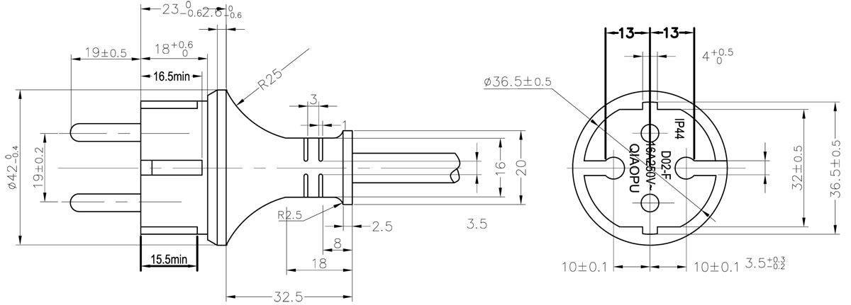Europe Power Cords VDE certified E02-F End Drawing (RoHS COMPLIANT)